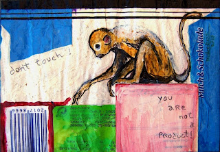 | Acrylic, Ink and Collage on old advertising posters; 9.1x13.5cm; 2012 |