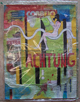 | Acrylic, Enamel, Ink & Collage on Old Advertising Poster; 18,4x10,5cm; 2013 |